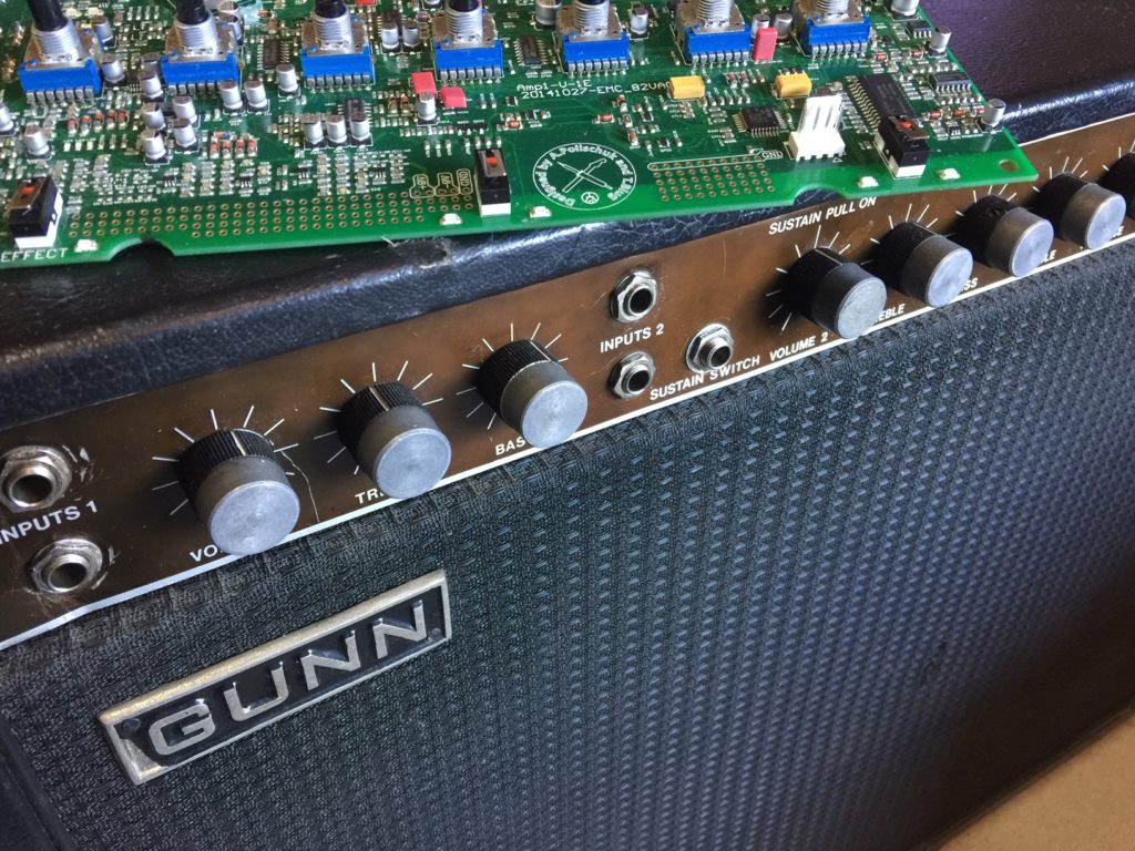 Here is brief outline the tube amp evolution through the decades. The photo below is of a 70’s Gunn 100 Classic amp made in Papatoetoe, Auckland, New Zealand. As a contrast the internals of a modern day 100-watt tube-based amp with modelling made in Germany circa 2015. This amp is no bigger than 3 effect pedals that you can put in your gig bag compared to the back breaking all tube amps of decades gone by.